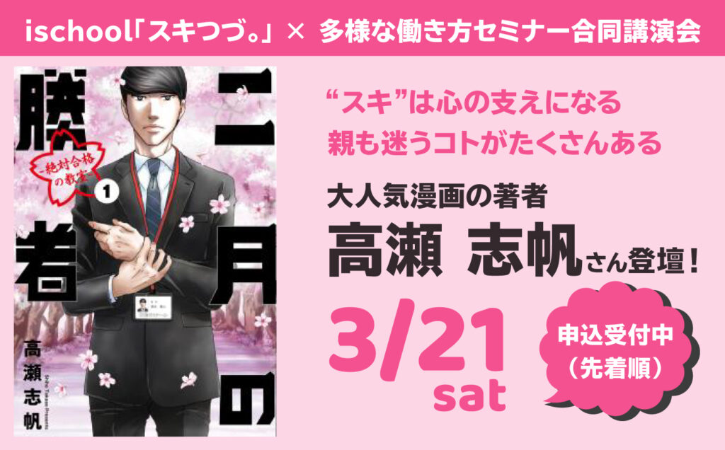 3/21(土)ischool × 多様な働き方セミナー合同講演会「“スキ”は心の支えになる / 親も迷うコトがたくさんある」